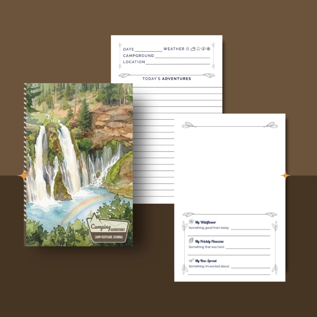 McArthur-Burney Falls inspired the Crystal Curtain edition of the Camp Keepsake Journal. This guided camp travel log helps you record trip highlights, weather, favorite moments, and memories worth keeping long after the campsite is packed up.