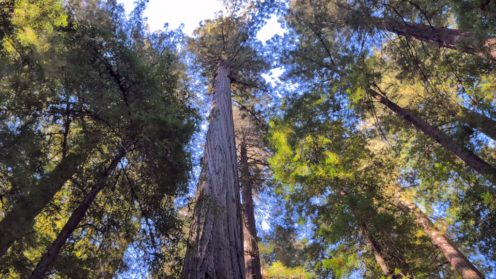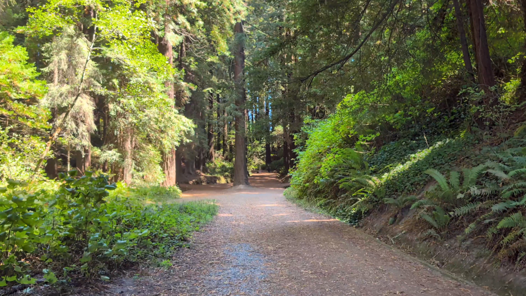 The dense forest canopy provides shade, beauty, and a classic Northern California redwood experience.